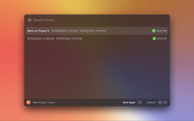 3. Check all tracked times with the "View Project Times" command.