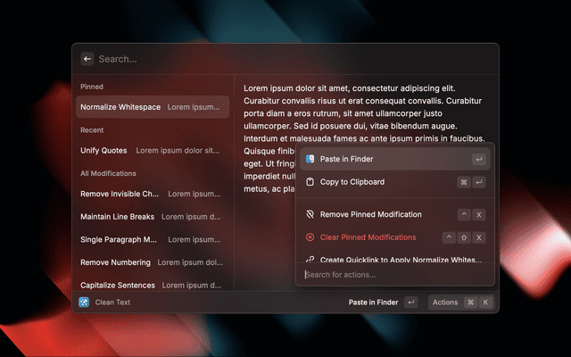 Clean and format text with various text modification operations
