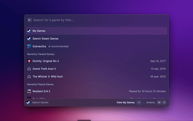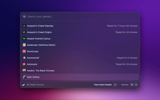 Source repo: https://github.com/KevinBatdorf/steam-raycast