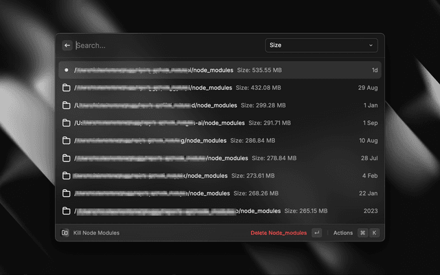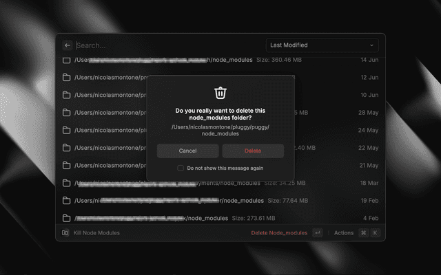 • Quick Deletion: A simple action to delete selected node_modules folders.