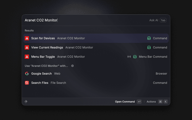 : By default, the extension will automatically scan for and connect to the nearest Aranet device.