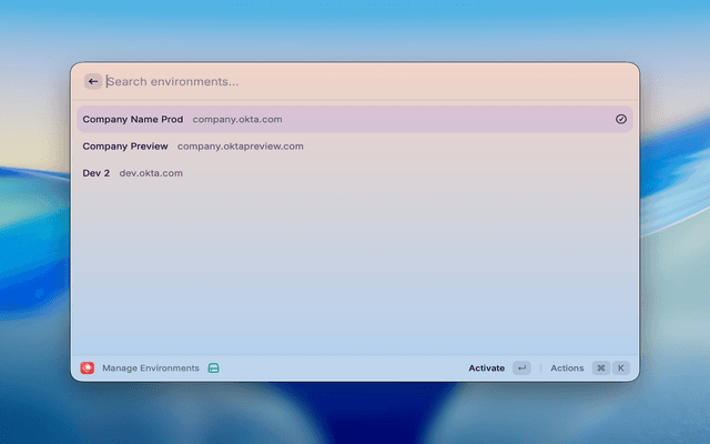 - Open Raycast and run the Manage Environments command.