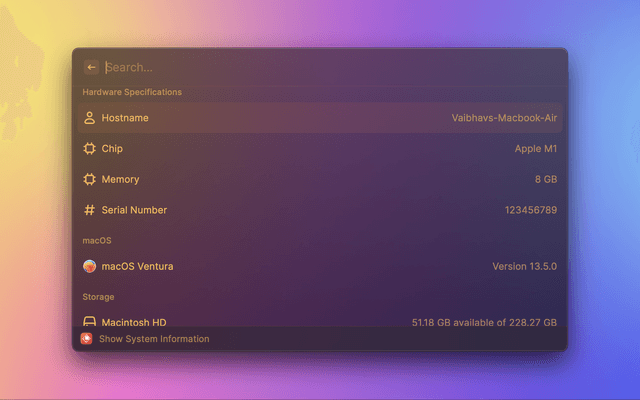 Quick access to your system information so you never have to open System Settings