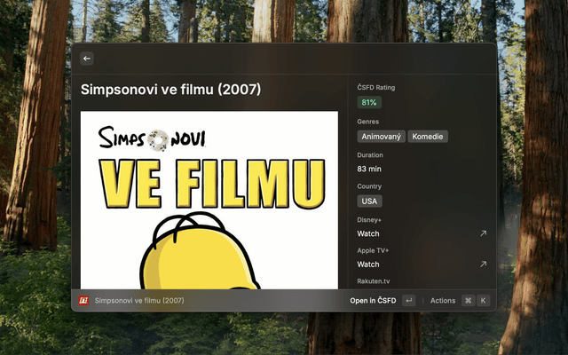 Search for movies and TV shows on ČSFD directly through Raycast AI. You can: