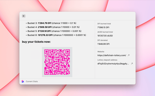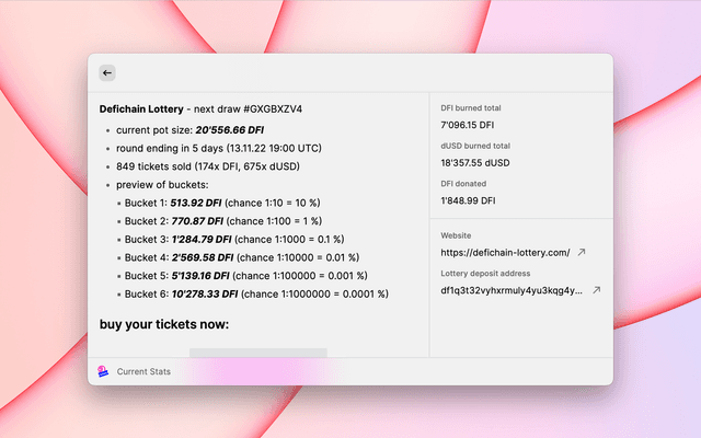 Stats and your tickets for the Defichain Lottery
