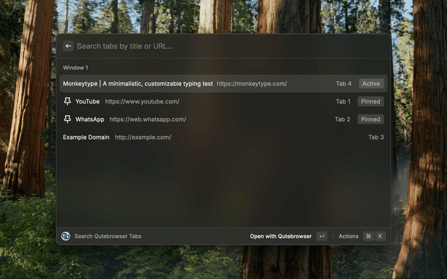 • Open the extension: Launch Raycast and search for "Qutebrowser Tabs"