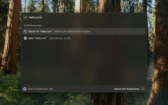 • Search with Qutebrowser: When no tabs match, select "Search with Qutebrowser" (⌘S)