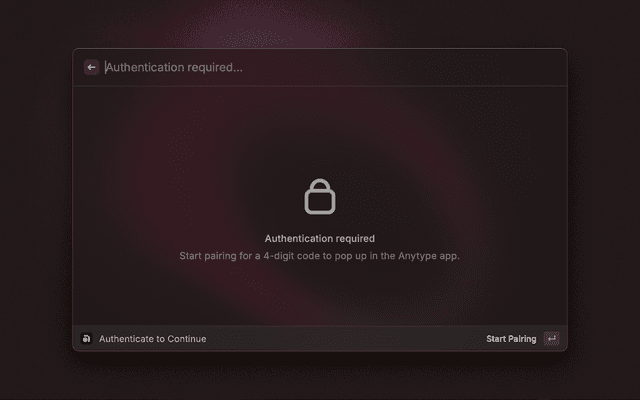 5. Enter the Code: A popup in Anytype Desktop will display a 4-digit code. Input this code in the extension's Code field. Press Command+Enter to confirm.