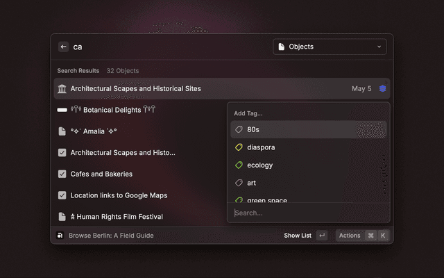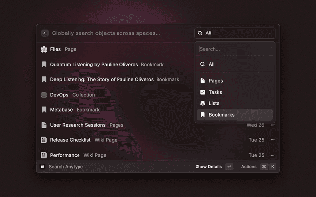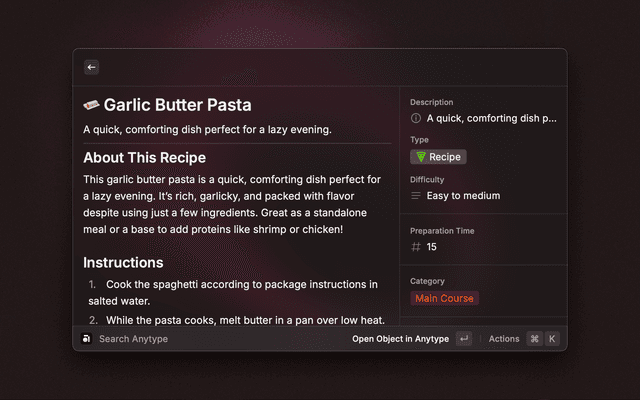 Create, browse, search and edit within Anytype - right at your fingertips, anywhere on your Mac.