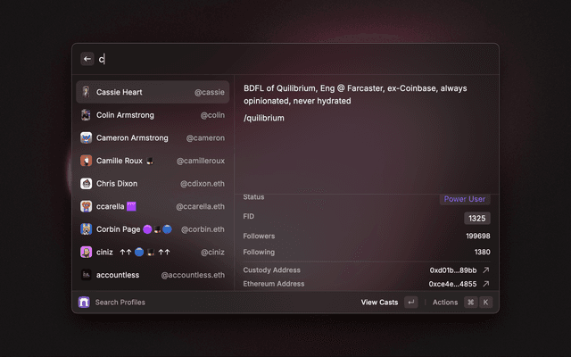 Most comprehensive extension for Farcaster. Search for casts, profiles and more. In order to use this extension, you'll need a Neynar API Key