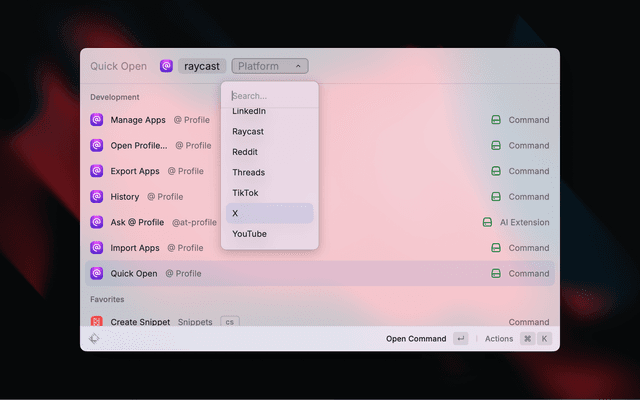 • Open Profile Command: Quickly open profiles across multiple social apps