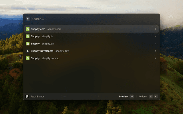 This Raycast extension allows you to interface with the Brandfetch API to fetch brand information quickly and efficiently. The extension is designed to be intuitive and easy to use, providing immediate access to brand details directly from Raycast.