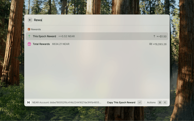 - Install the NEAR Rewards extension from the Raycast Store