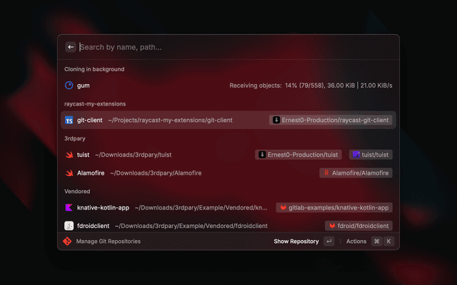 • Quickly clone multiple repositories from a URL over HTTPS or SSH in the background