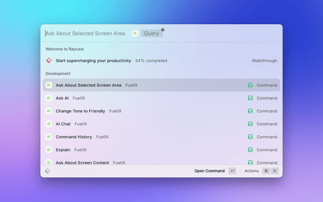 Capture a screenshot of a specific selected area of your screen and ask Fuelix AI about that particular region. This allows for more focused analysis of specific parts of your screen - perfect for analyzing particular windows, sections, or UI elements.