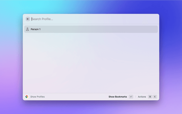 Hit Enter ↵ to enter a profile's bookmarks, or ⌘ ↵ to open (or focus) the profile chrome window.