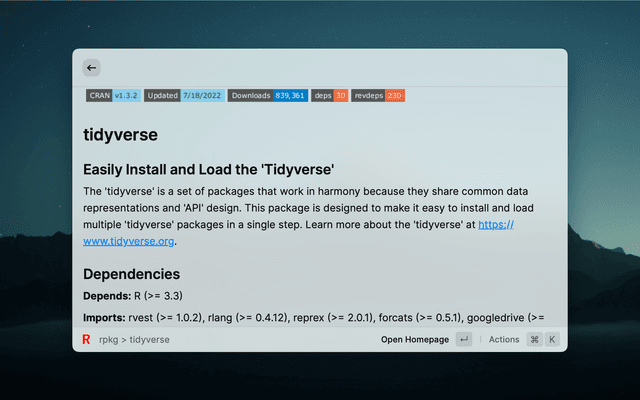 A Raycast extension to search for R packages using METACRAN on r-pkg.org.