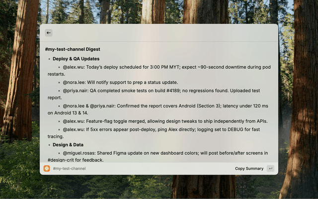 Summarize Slack ChannelPicks every standalone message and thread in a channel over the last n days and generates a concise digest.