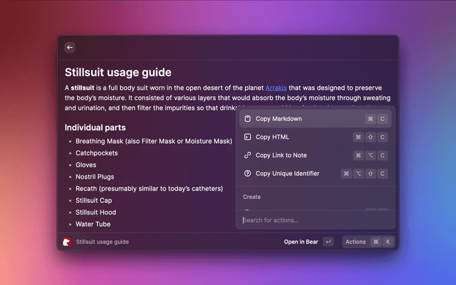 Search for Bear notes and open them in Bear. Other features of the extension: