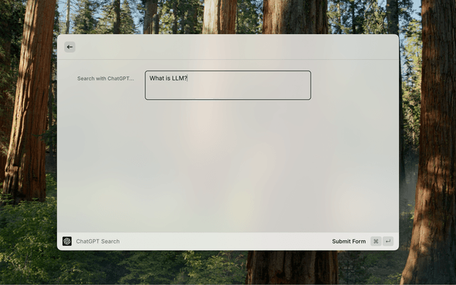 Initiate ChatGPT Search (aka SearchGPT) from within Raycast. https://openai.com/index/introducing-chatgpt-search/