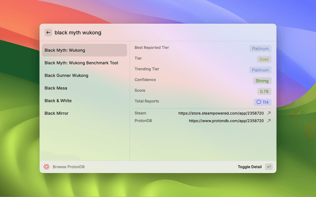 • Browse game scores at ProtonDB