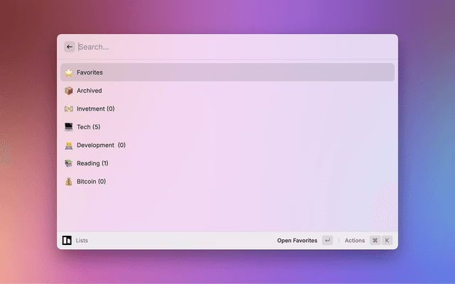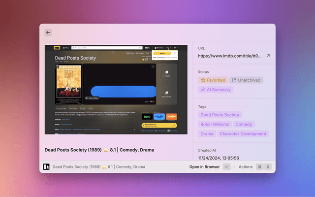 • Intuitive Search: Quickly locate any bookmark or content using the online search feature of Karakeep and the powerful search capabilities of Raycast.