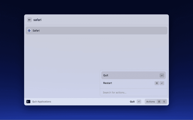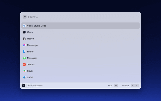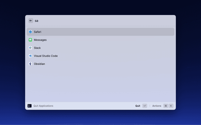 Simply search for and select the application you would like to quit and hit enter. The window stays open for you in case you would like to quit multiple applications.