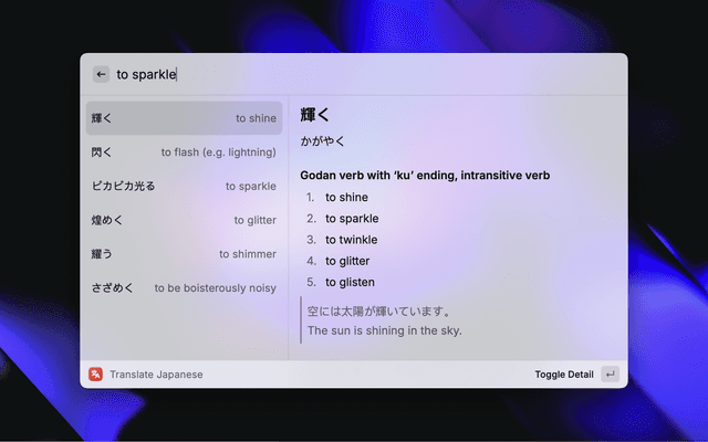 Offline Japanese-English dictionary. Instant search for kanji, kana, and English terms.