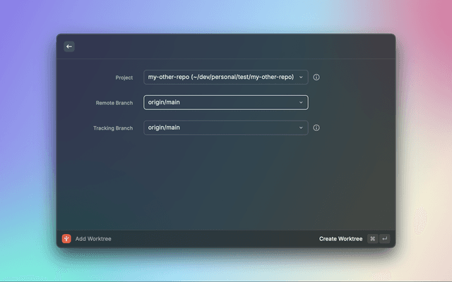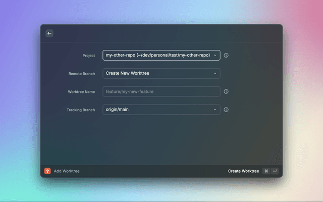 • Add Worktrees: Create new worktrees from branches or create new branches