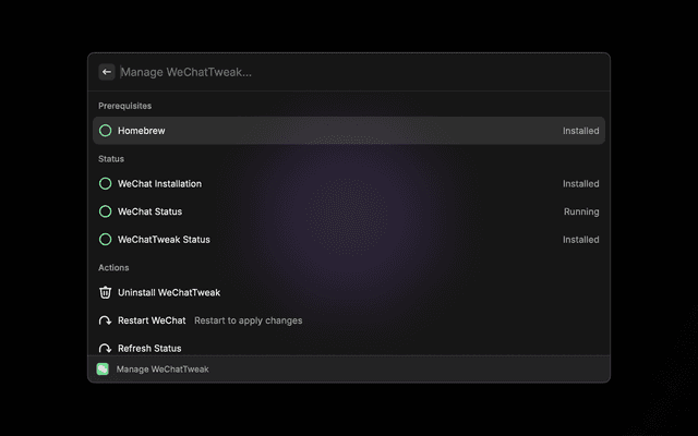• Manage WeChatTweak / 管理WeChatTweak