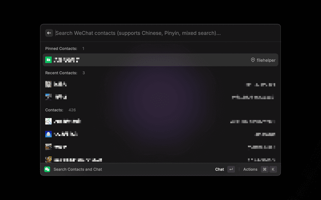 A Raycast extension for WeChat to quickly search your contacts and chat