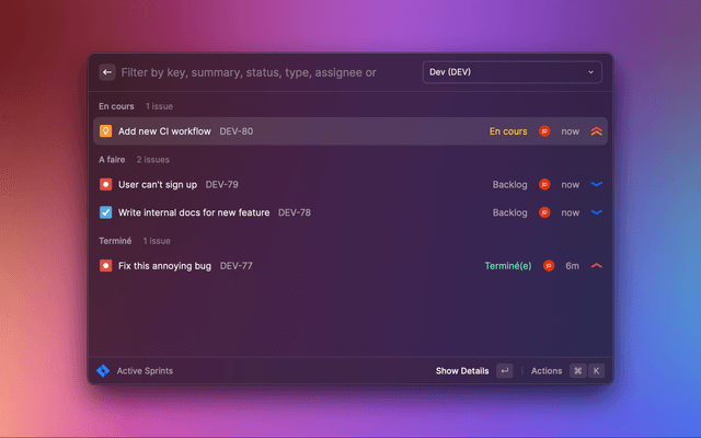2. Select any command from the Jira extension, then press + K and scroll down to Configure Extension. Enter your email, API token, and Jira site URL (without https://) on the right. Note that all three must be provided to use API tokens.