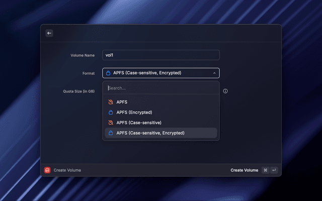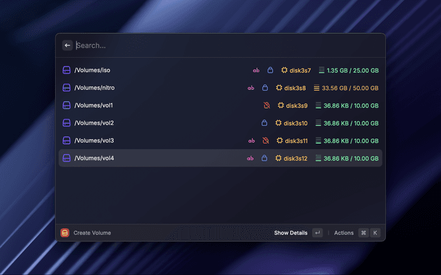 Raycast extension to create, list and delete Apple File System (APFS) disk volumes