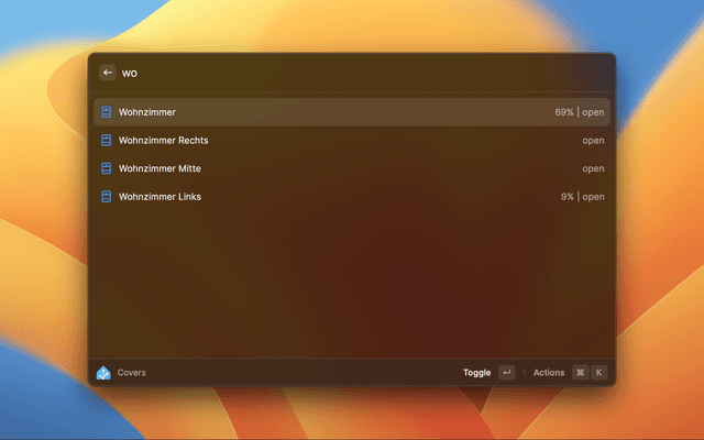 Now you should be able to manage your Home Assistant instance with Raycast 🚀.