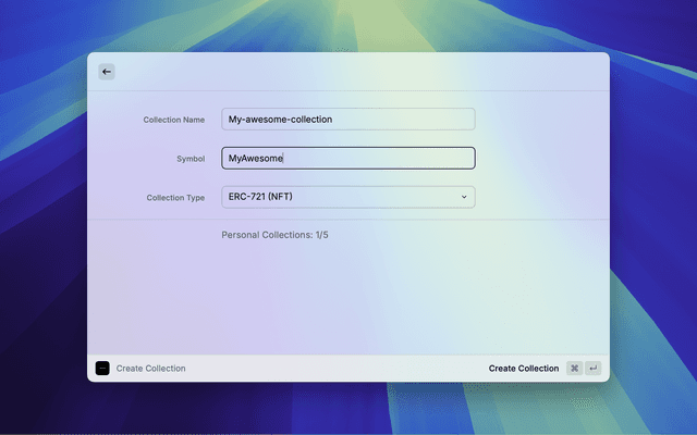 • Create Collections: Create and deploy new NFT collections (both ERC721 and ERC1155).
