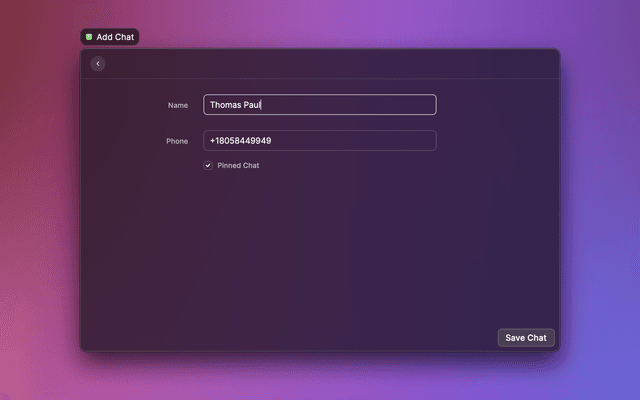 At the time of writing this, WhatsApp does not offer a public API for users. It only provides application links to quickly access already existing chats. Until WhatsApp provides a public API, the Add Chat and Add Existing Group commands will serve for adding the chats to the extension so users can access them from the Open Chat command.