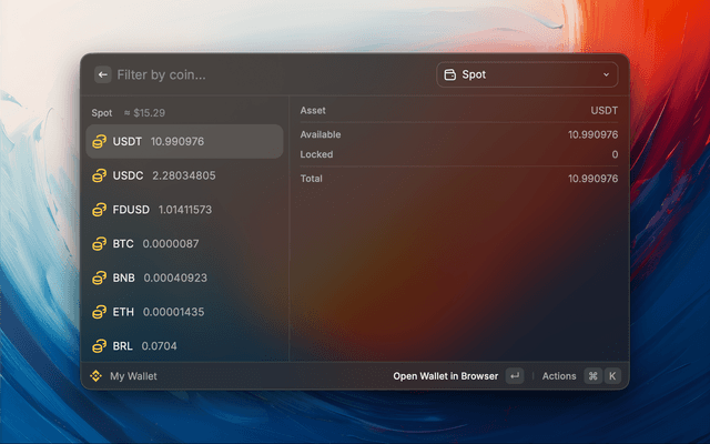 | My Wallet Menu Bar | See your Binance portfolio balance in the menu bar |