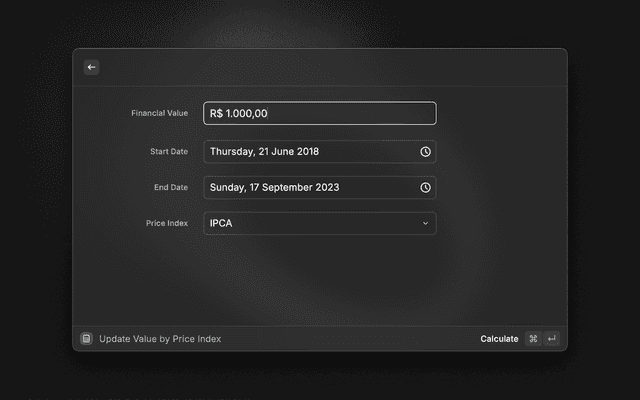 • Update Value by Financial Index: Update a value based on a variety of Brazilian price indices.
