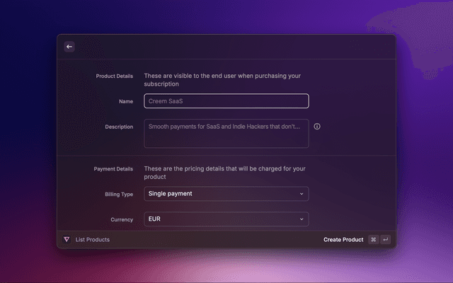 This is a Raycast extension for Creem - Smooth payments for SaaS and Indie Hackers that don't break the bank.