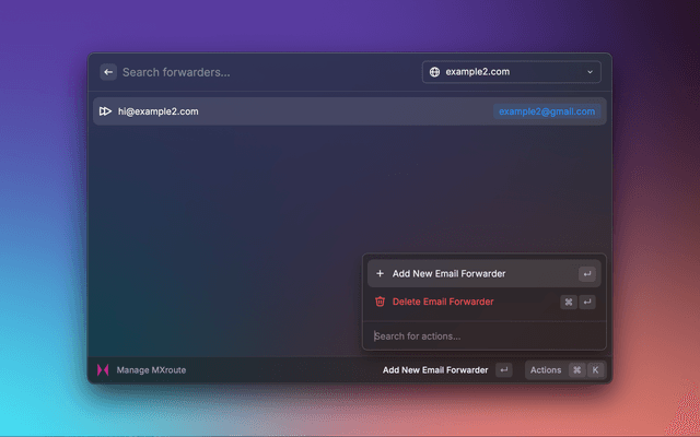 This is a Raycast extension for managing MXroute using the newly introduced API.