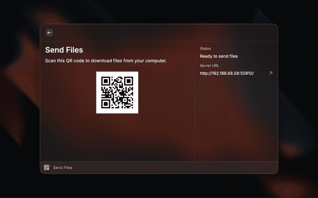 • Receive Files: Scan a QR code from your mobile device to upload files directly to your computer.